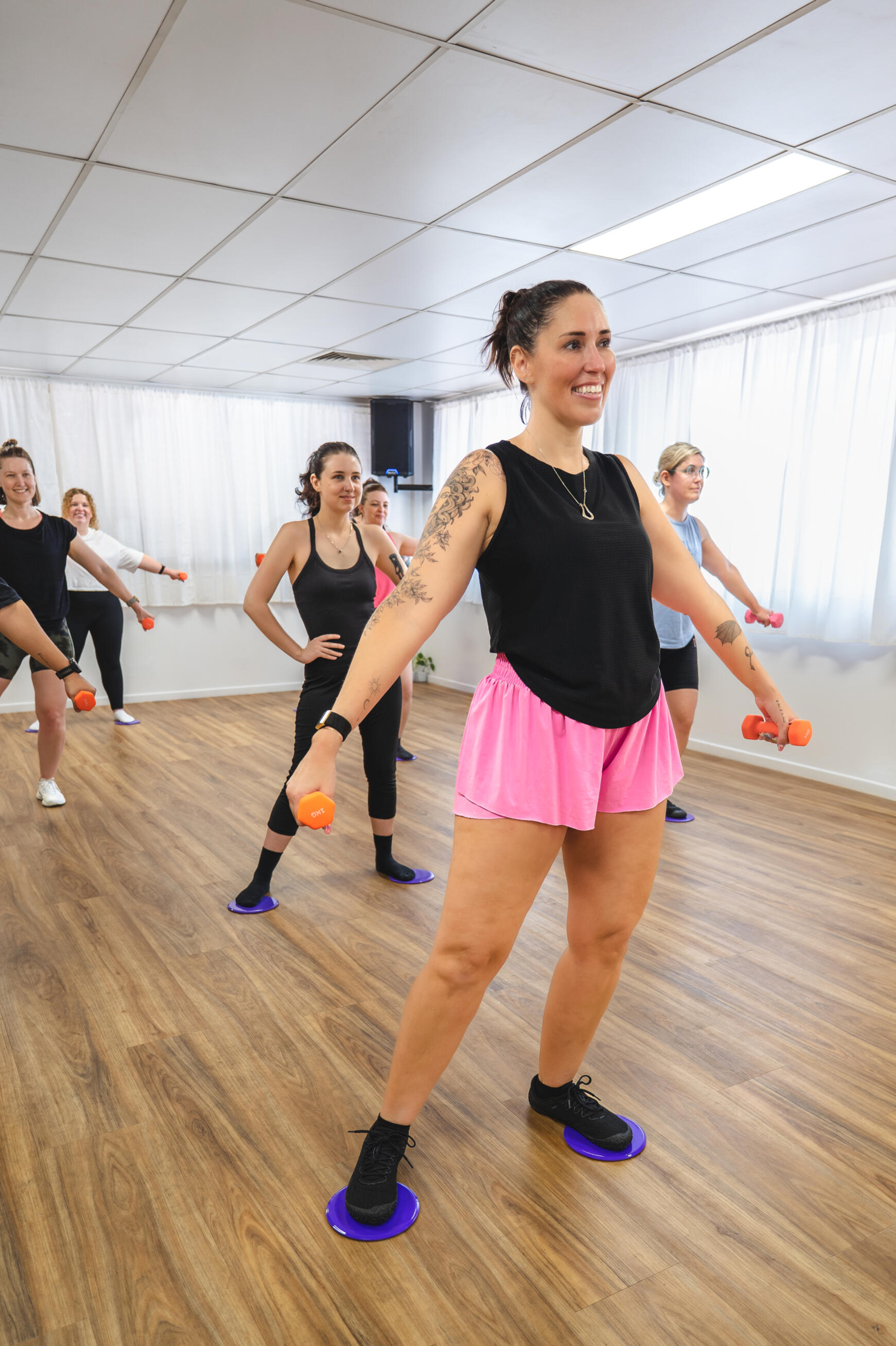 Classes are designed to improve cardiovascular fitness, coordination, and muscular endurance, while still feeling fun, musical, and motivating. You’ll work hard without it feeling like a traditional gym session.