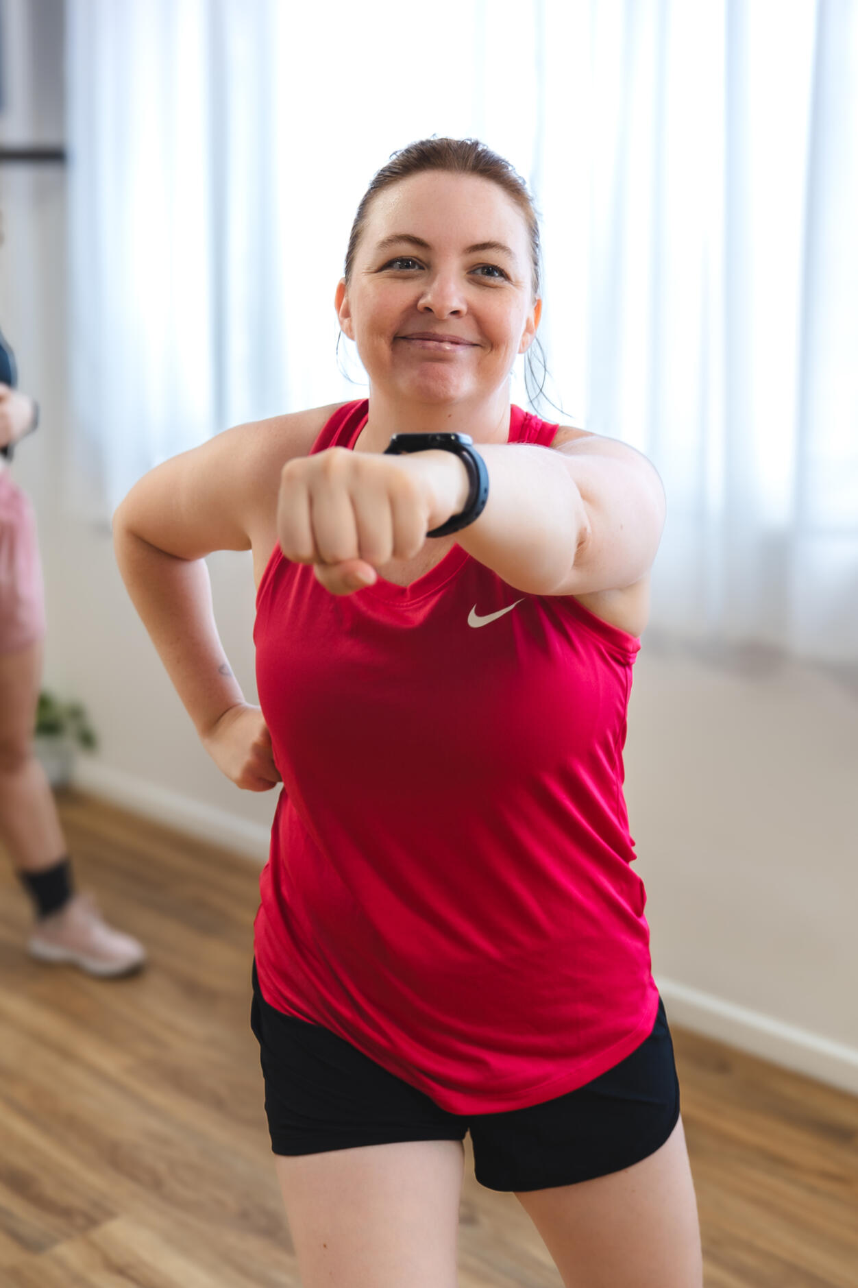 Kat is a qualified strength and conditioning coach and can modify movements to suit injuries, limitations, or pregnancy. If you’re unsure, reach out before your first class so we can make sure you’re set up safely.